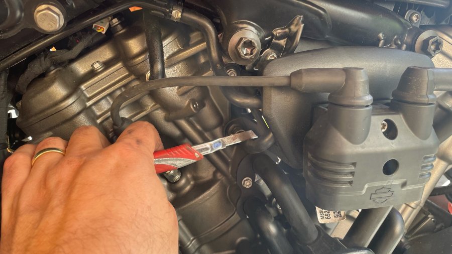 The first step is to find the vacuum connection on your bike. This could be an already existing and blanked off vacuum spigot, a vacuum blanking screw, a vacuum operated fuel tap or a balancing pipe between your cylinders. Motorbikes after 2016 also have an EVAP System to control the emissions. This is operated by the engine vacuum and you can connect into the vacuum line between the throttle bodies and purge valve. Once you have identified your vacuum source connect it with the vacuum damper elbow and black vacuum line to your Scottoiler.