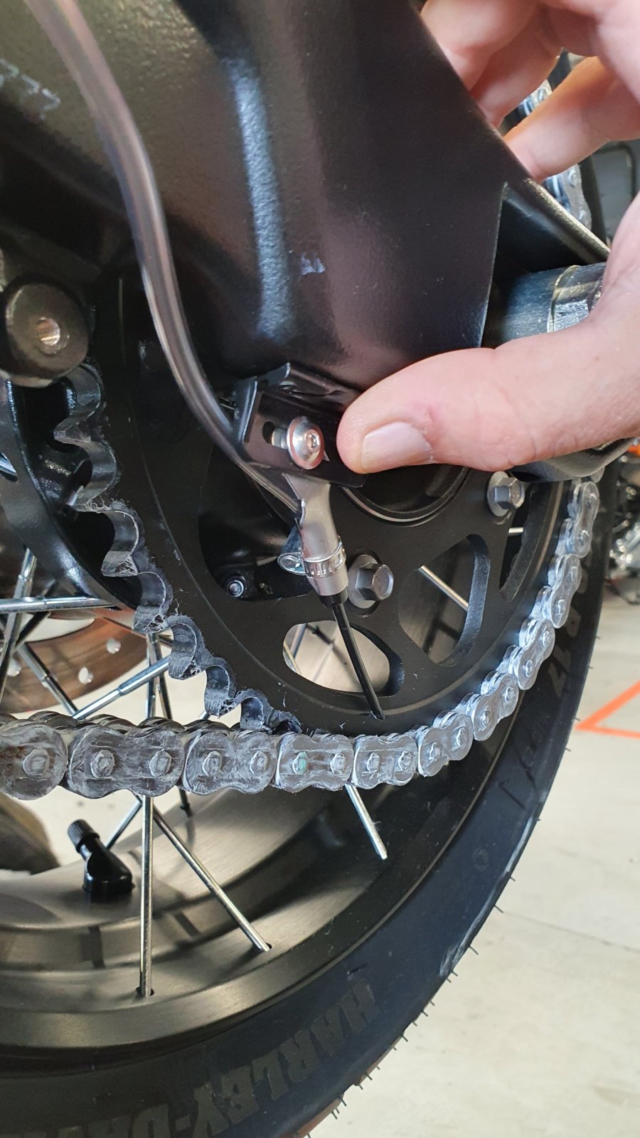 Alternatively you can use the micro dispenser plate by itself on any other mounting point on your rear swing arm / sprocket location such as bobbin mounts or toe guards.