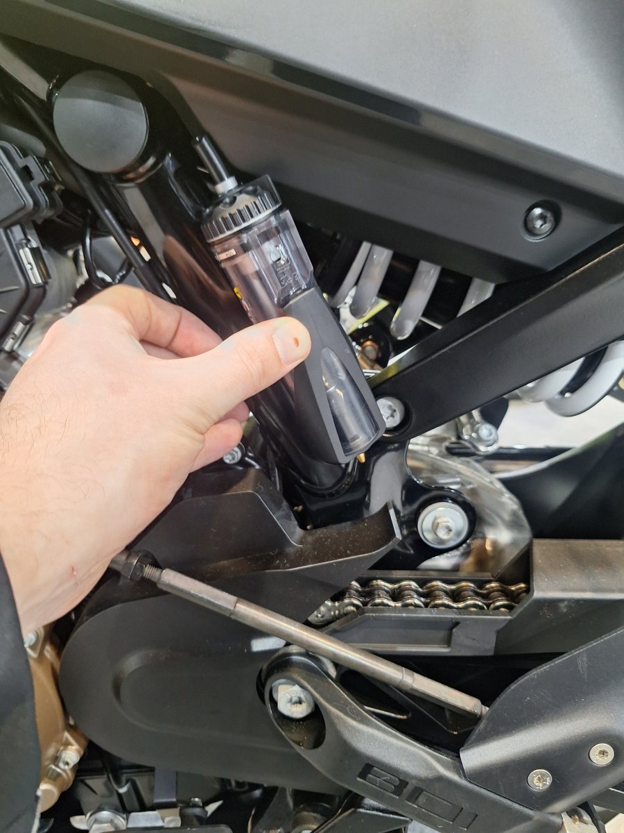 Once fitted, fill and prime the system and set the adjuster knob to ’prime’. Start the engine and turn the adjuster knob until a flow of between 1 and 2 drops per minute is achieved. Check the condition of your chain after a ride, and then adjust as required.