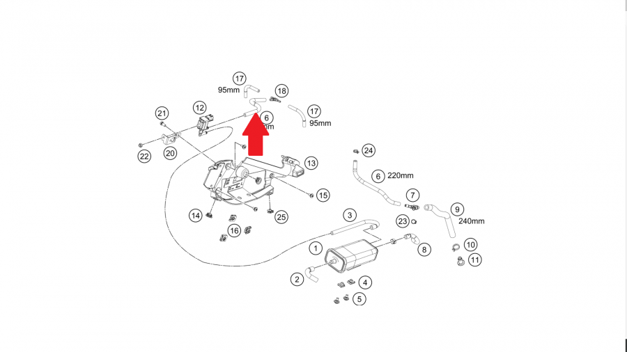 The reservoir can be mounted under the seat or on a frame spar. Ensure that the top of the reservoir is at least slightly raised (ideally above 15° from horizontal) to maximise the available range.