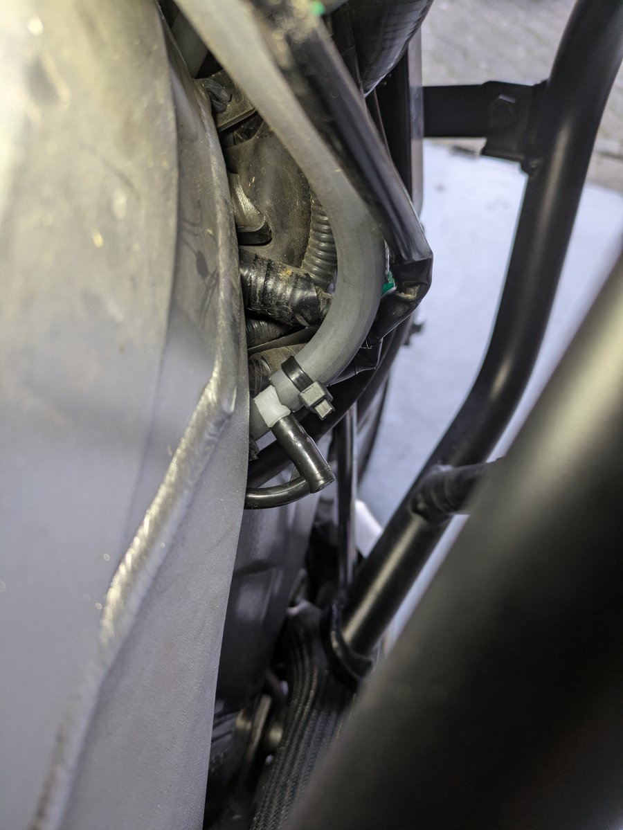 Vacuum feed taken from pipe between EVAP purge valve and throttle body feed. (View from right side)